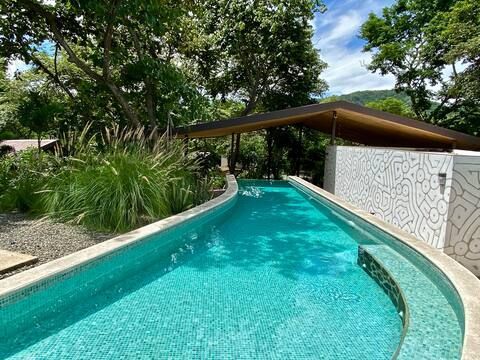 Please send us an email for a quote. Property consists in 4 separate villas that sleeps 4 persons per villa, with private bathroom and outdoor shower on each villa. The 4 villas together accomodate a total of 16 guests, fully equipped community kitchen, saltwater pool, just 3 minutes drive to Playa Grande Beach. Great place for family, friends gatherings, surfing groups !